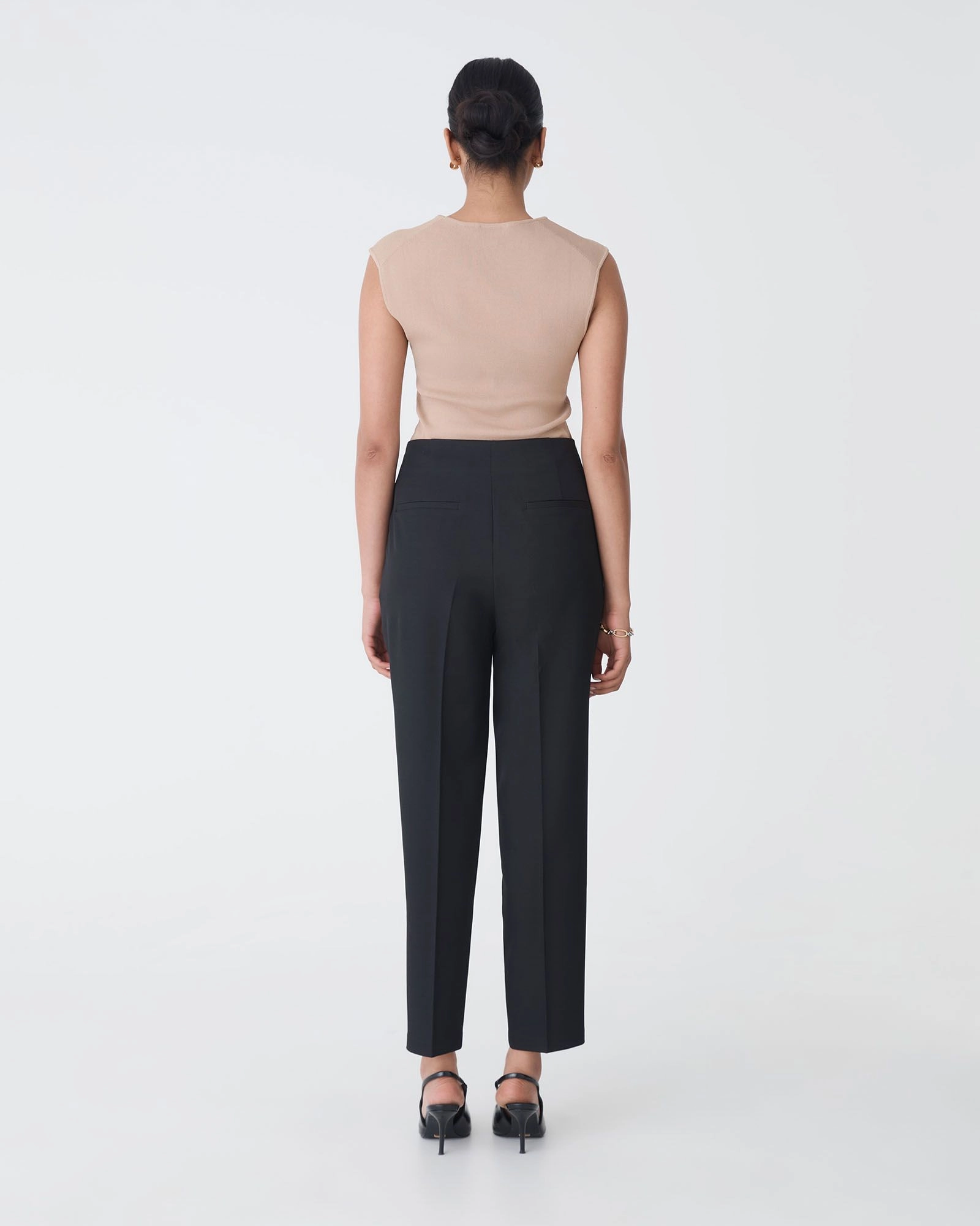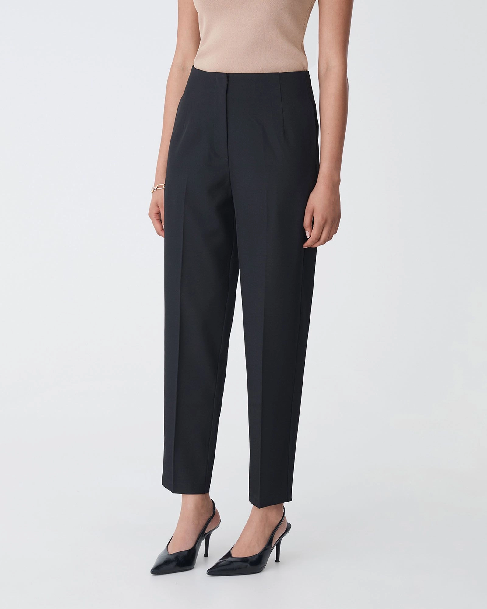 Refresh your work wardrobe with the Mila Tapered Leg Pant. Designed with a high to mid-rise waist, and a tapered silhouette, it features side-seam pockets, a concealed zip-and-hook closure, and mid-weight suiting fabric for effortless office wear. Pair with the matching Mila Single Breasted Blazer, a tucked-in blouse, and heels for a coordinated, polished look.