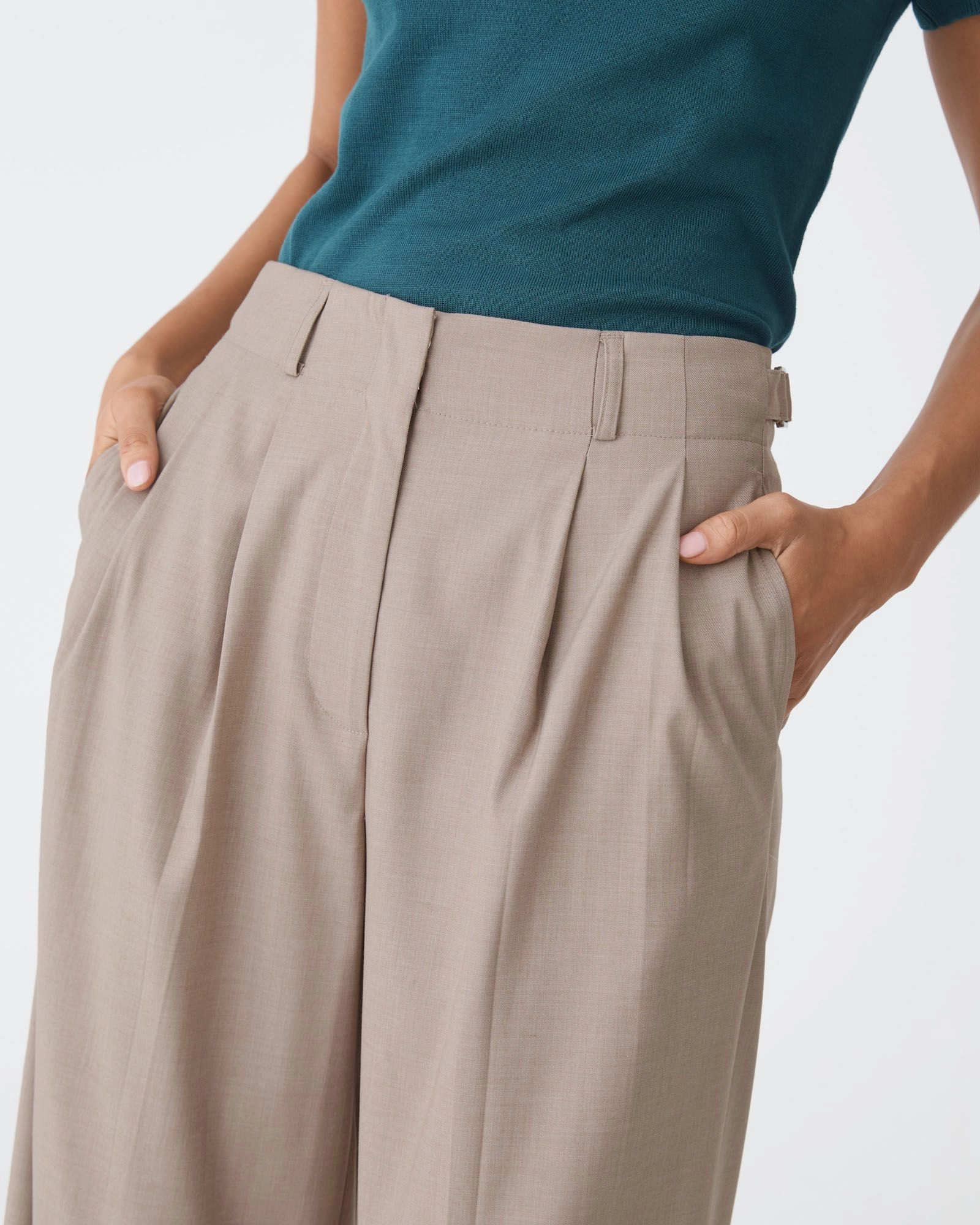 - Front double pleats
