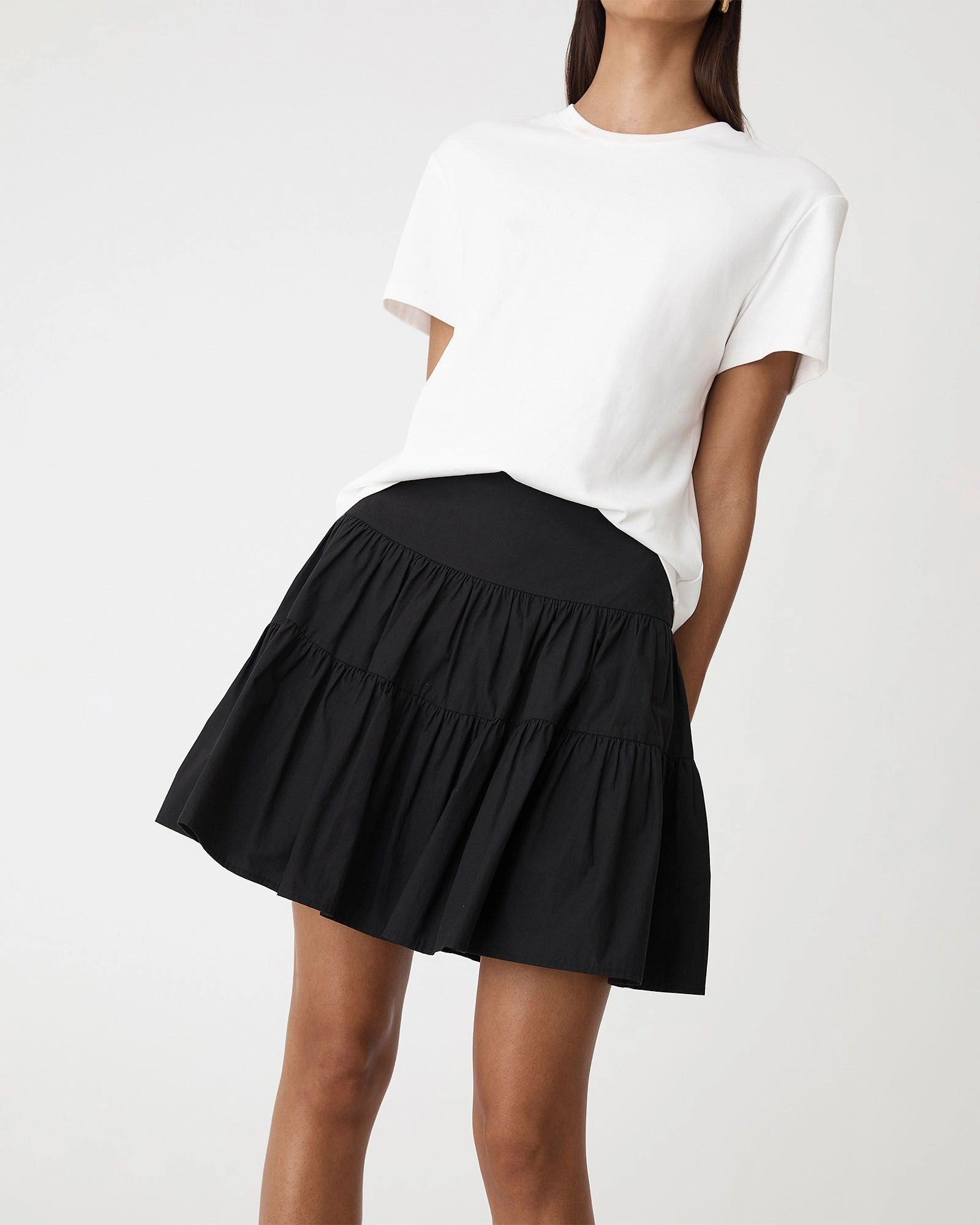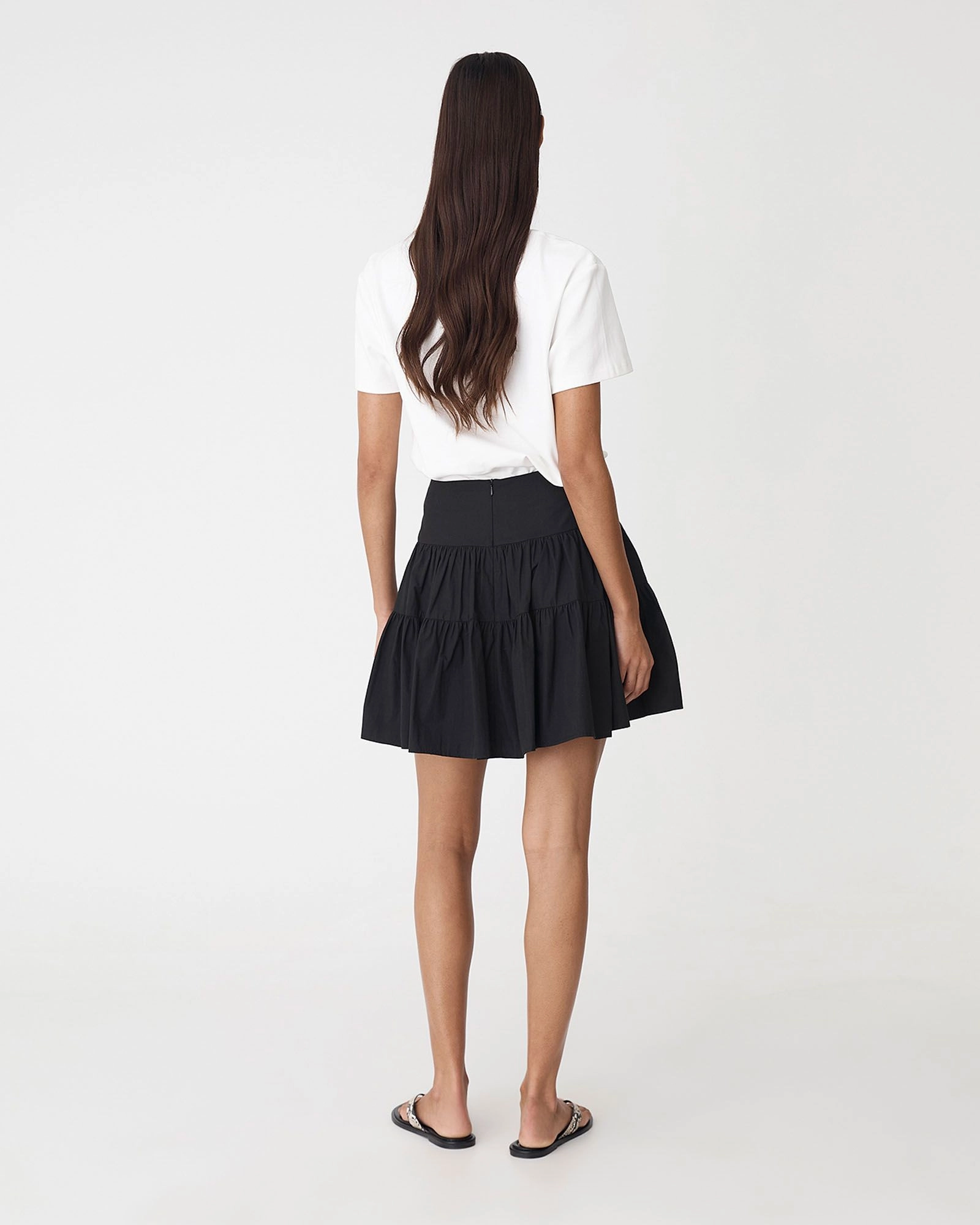The Montana Tiered Mini Skirt features a flattering high-rise waist with tiered, gathered layers for soft volume. Cut to a playful mini length, it’s an easy piece that can be paired with a fitted top or mix prints for a fun, summer-ready look.