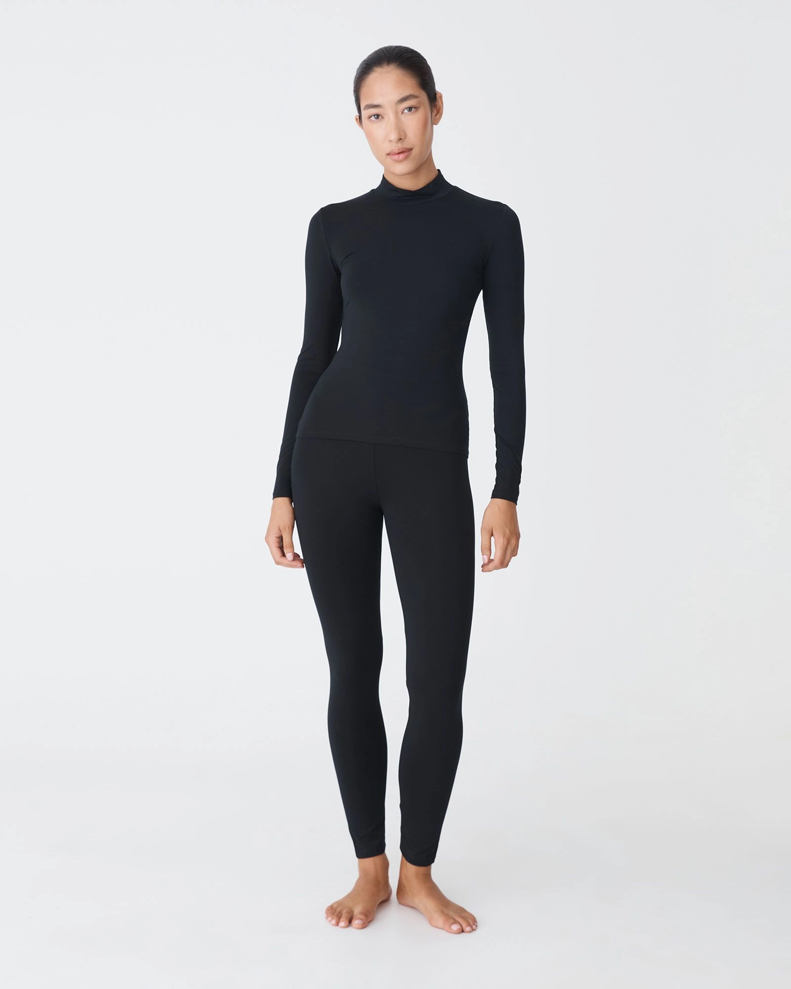 Designed as an underlayer, the Nina Bamboo Long Sleeve Top is made from a soft bamboo blend. It features a refined mock neckline in a slim, streamlined fit that is perfect for layering under sheer garments. Naturally breathable, it offers all-day comfort across seasons, making it an ideal base for modest styling.
