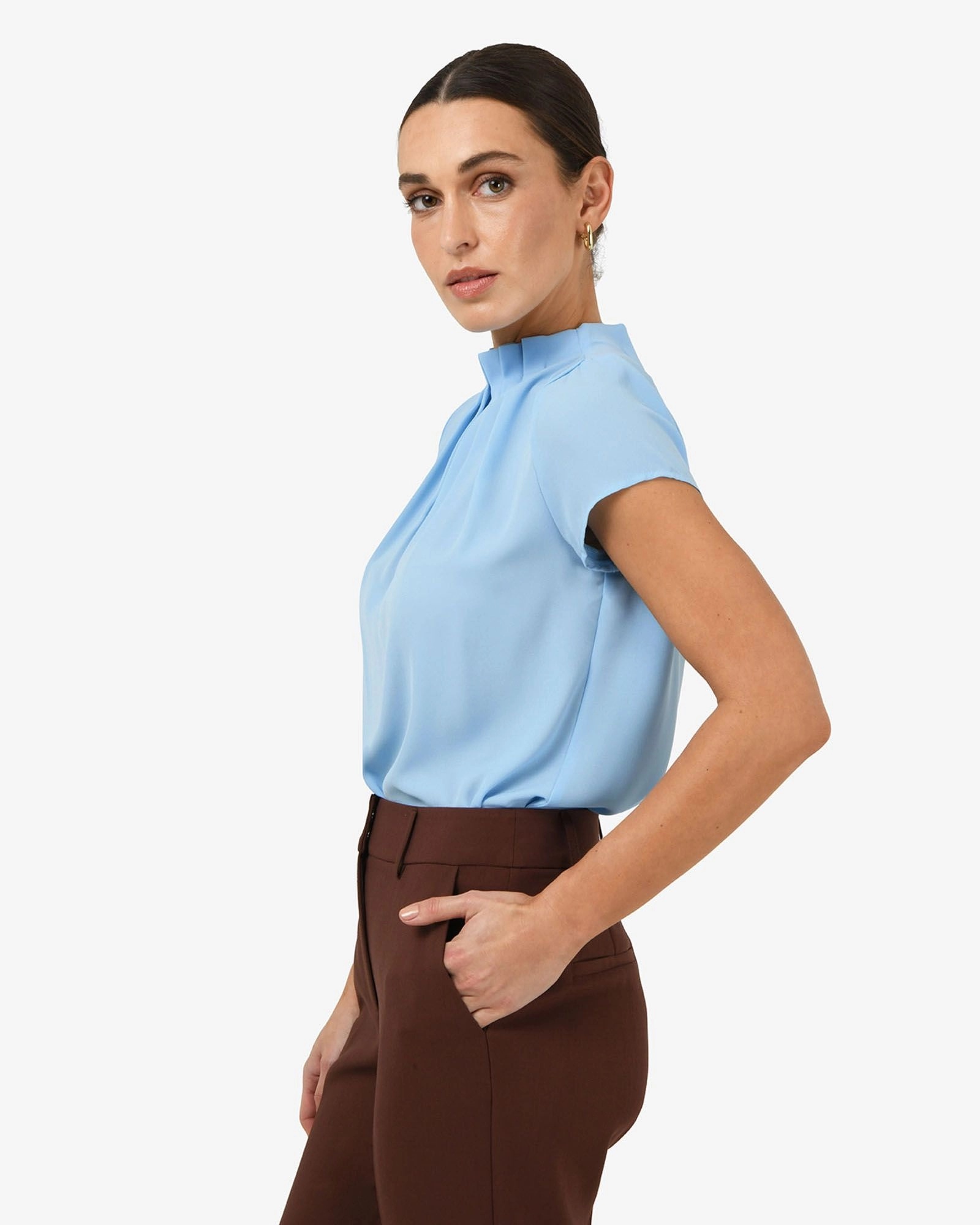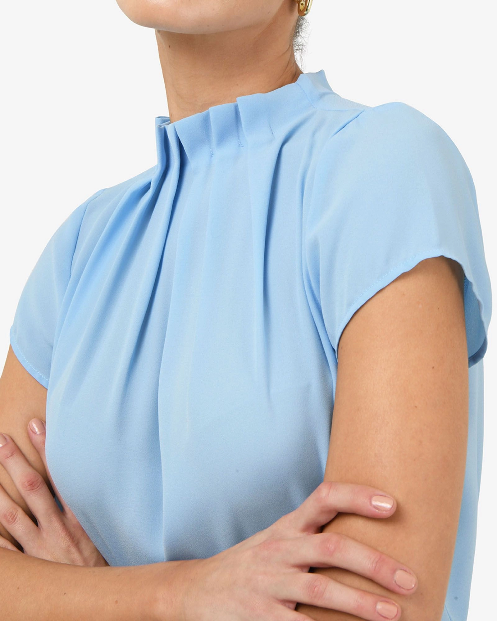 Sophisticated and stylish, the Olivia Pleated High Neck Top is the perfect addition to your wardrobe. Designed with a chic high neckline and statement intricate pleating, this top offers a refined silhouette that effortlessly elevates any look.