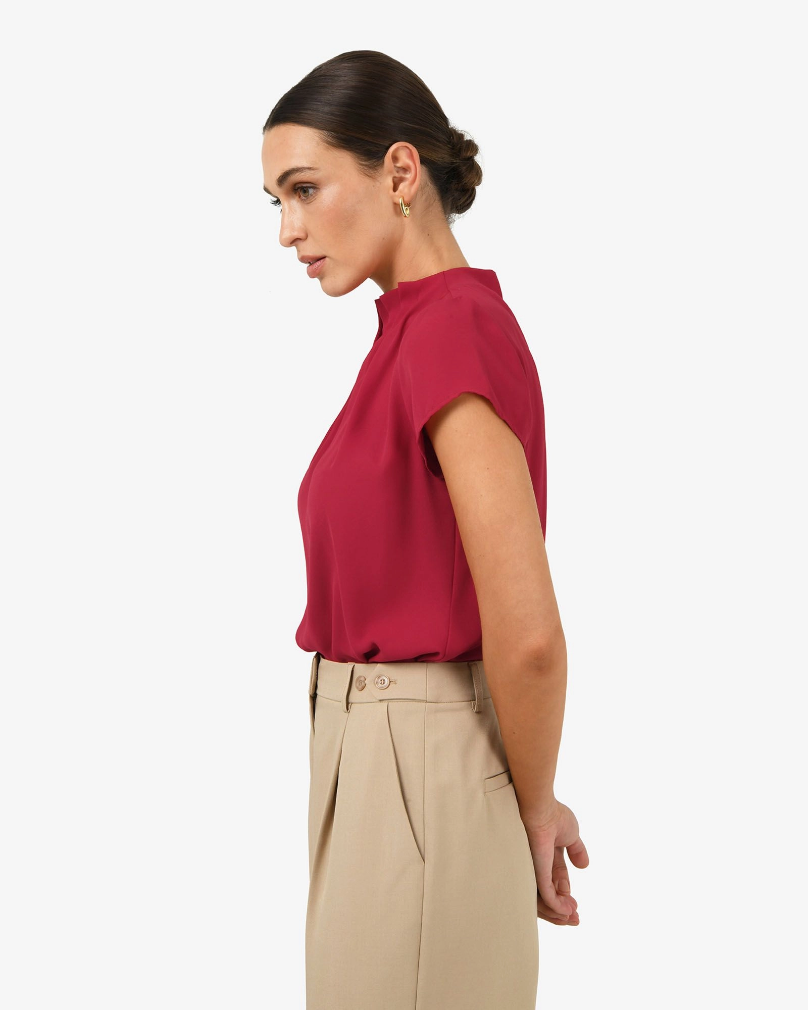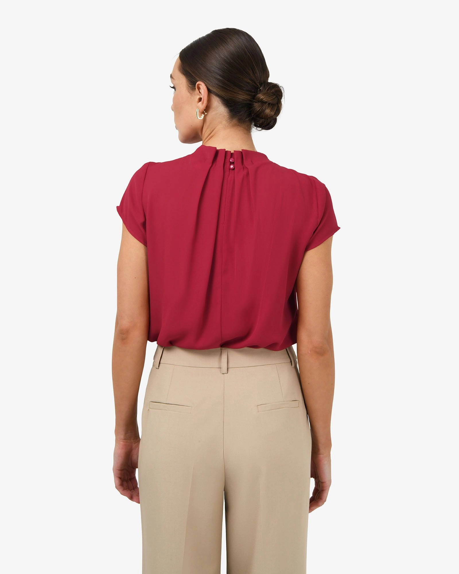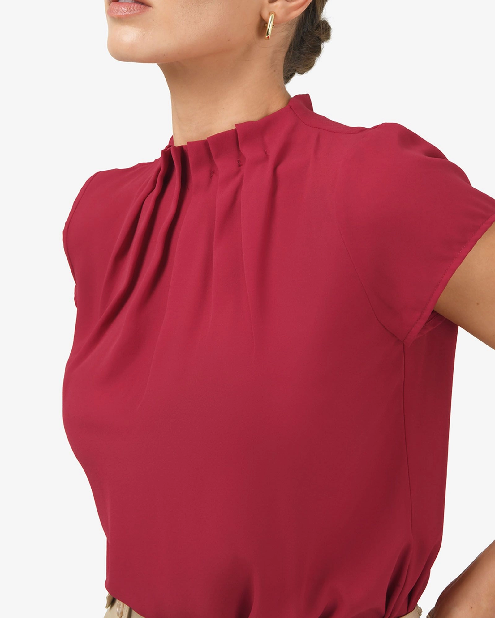 Sophisticated and stylish, the Olivia Pleated High Neck Top is the perfect addition to your wardrobe. Designed with a chic high neckline and statement intricate pleating, this top offers a refined silhouette that effortlessly elevates any look.
