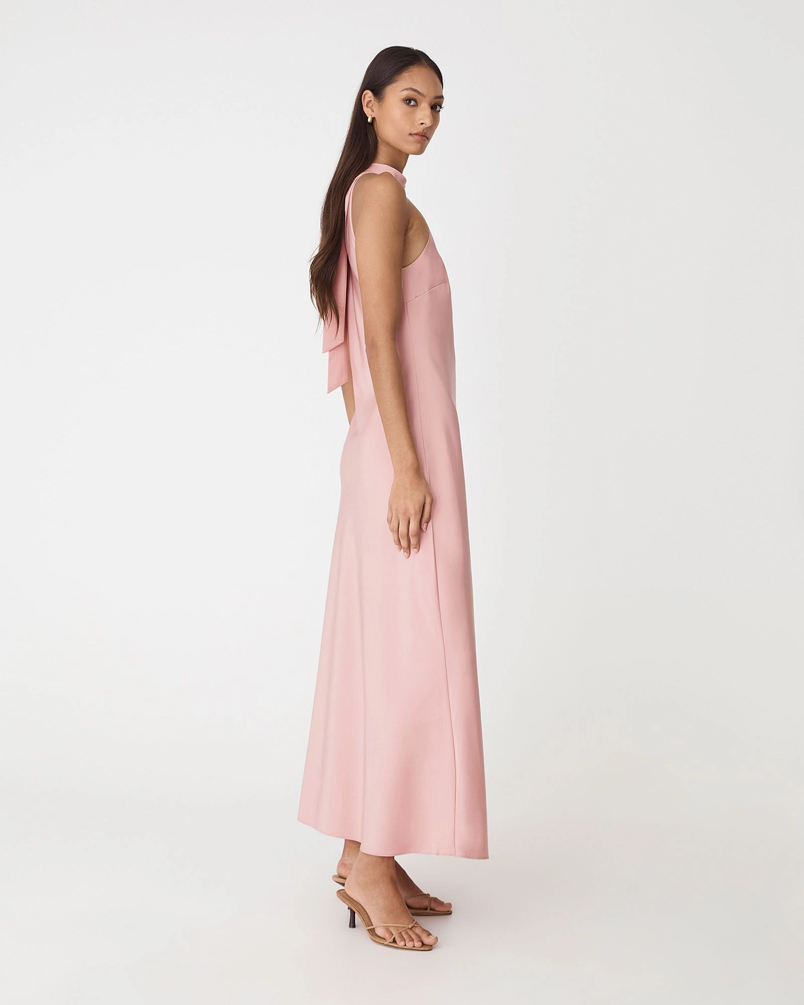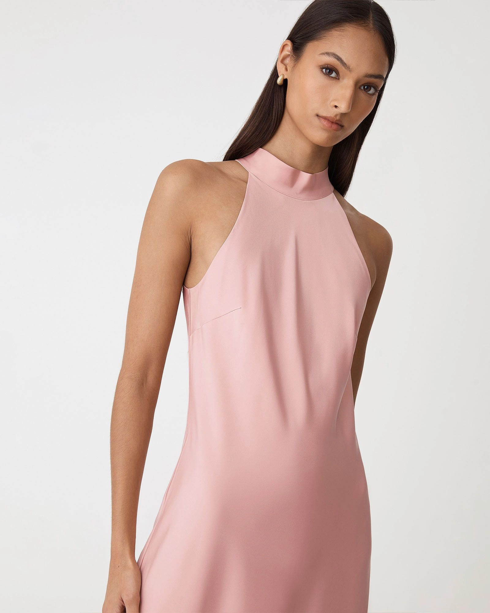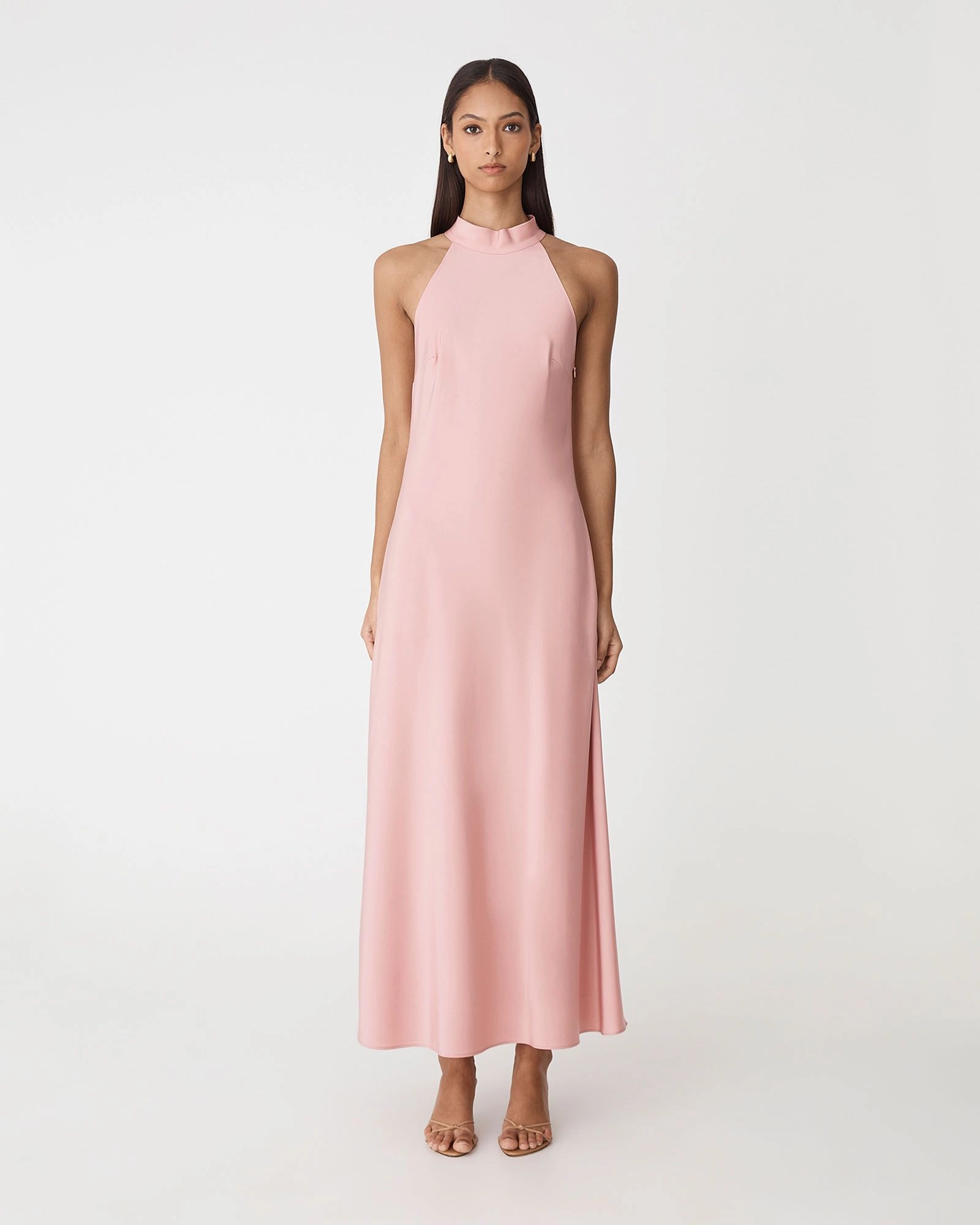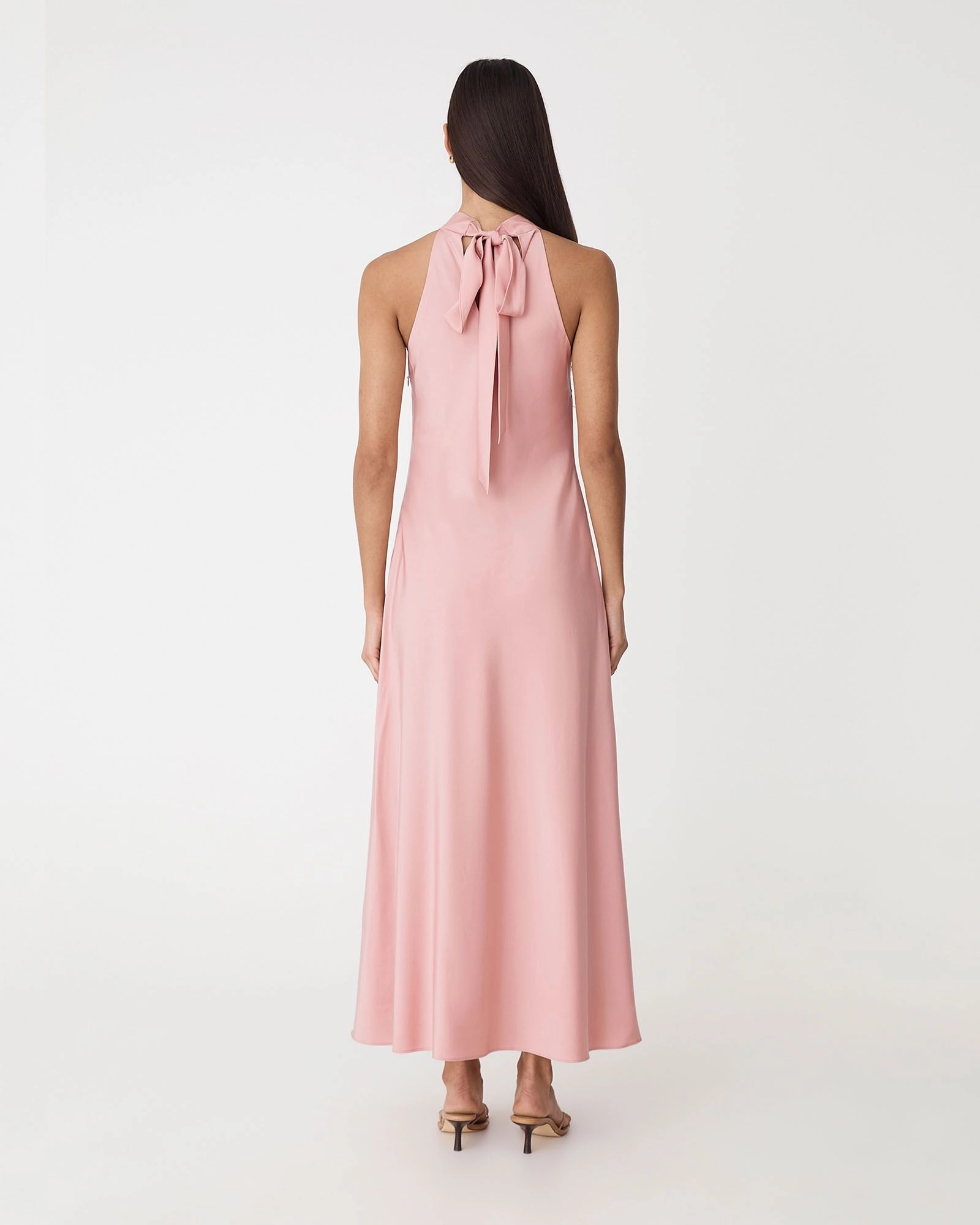 The Paula Halter Neck Dress is a sleek maxi dress with a bias cut silhouette for a soft fall. It features a halter neckline with back keyhole and tie closure in a racer cut design. Fully lined for a smooth finish, the dress is a timeless choice for elegant occasions. Style with heels and statement jewellery to complete your look.