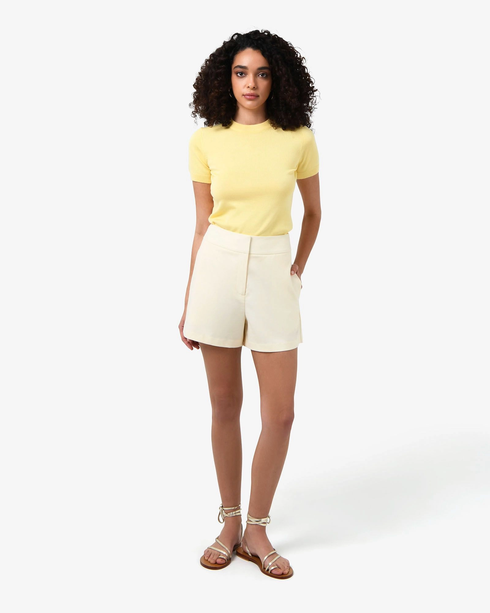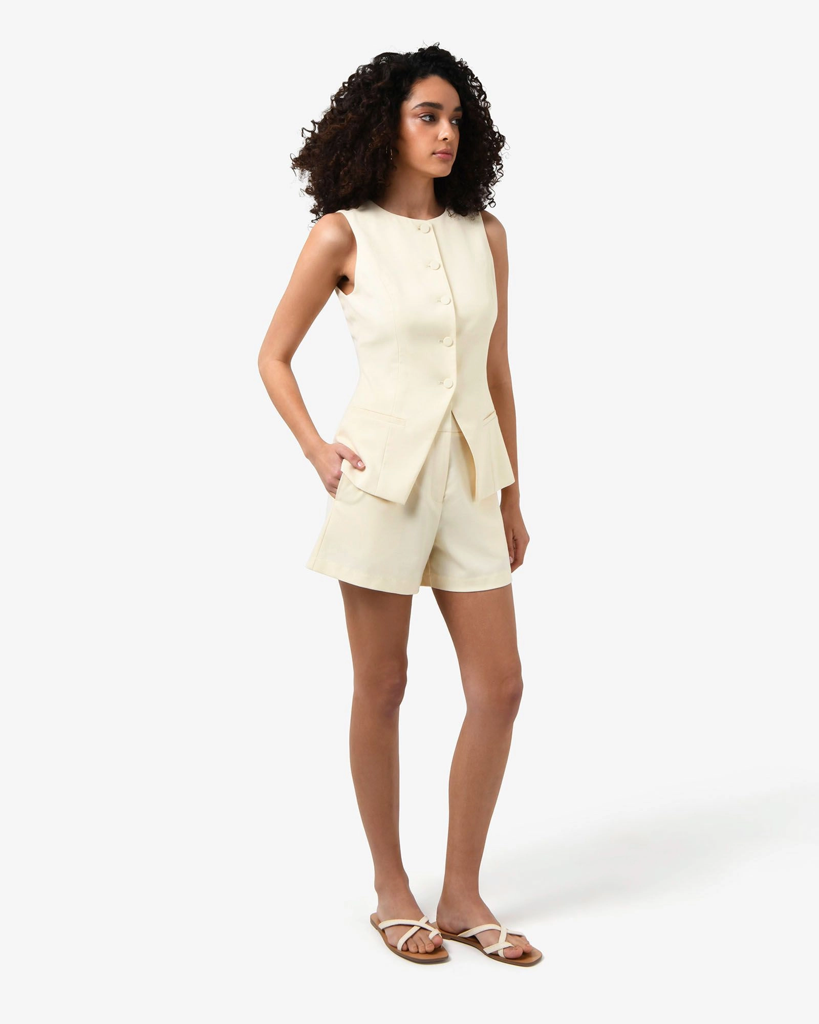 The Rylan High Waist Shorts feature a flattering high-rise silhouette with a fixed waistband and concealed front fly for a streamlined finish. Designed with functional side pockets, faux back welt pockets, and designed from a structured fabric with slight stretch, they’re fully lined for comfort and shape. Style with basic tops or pair with the matching Rylan Longline Button Vest to complete the look.