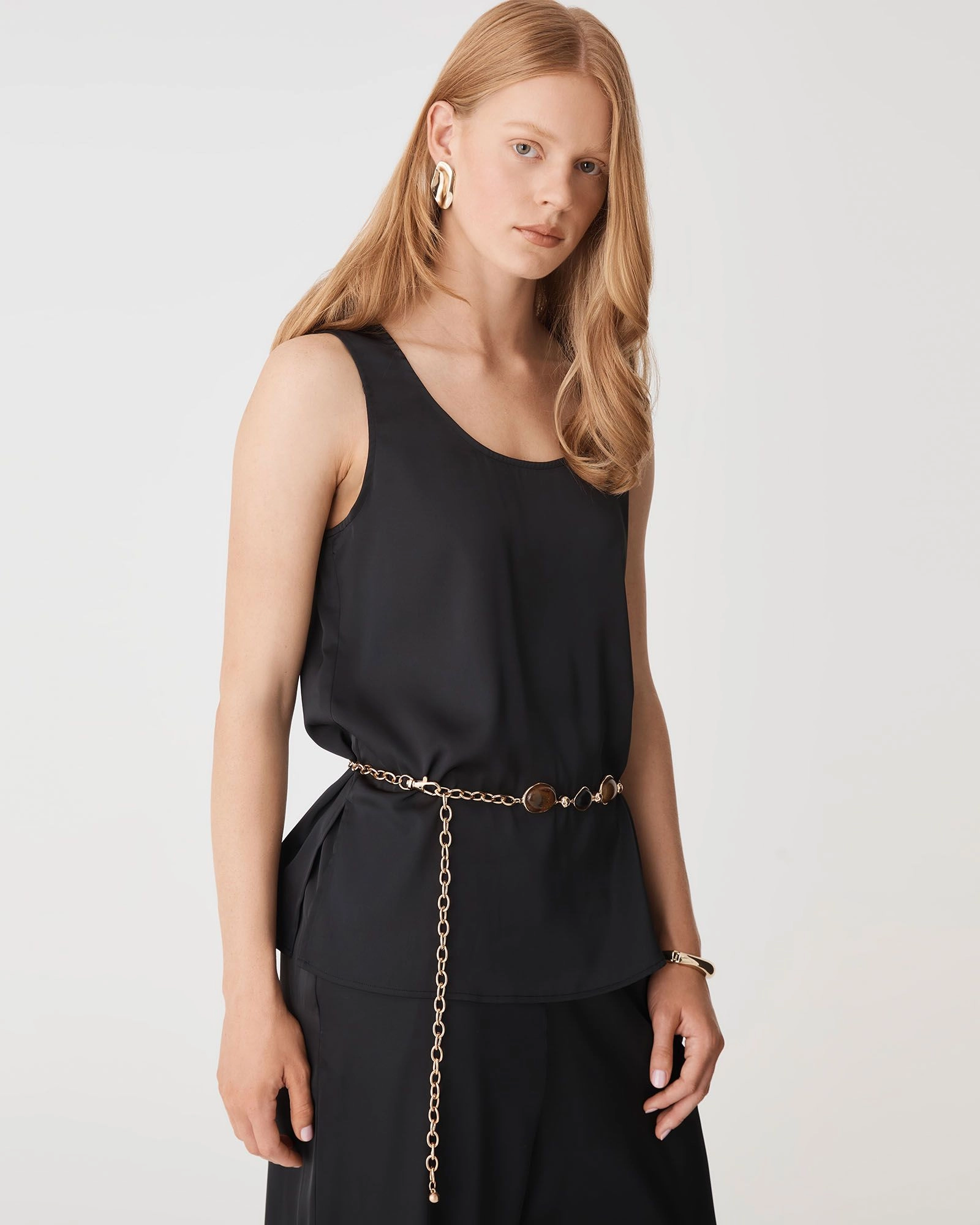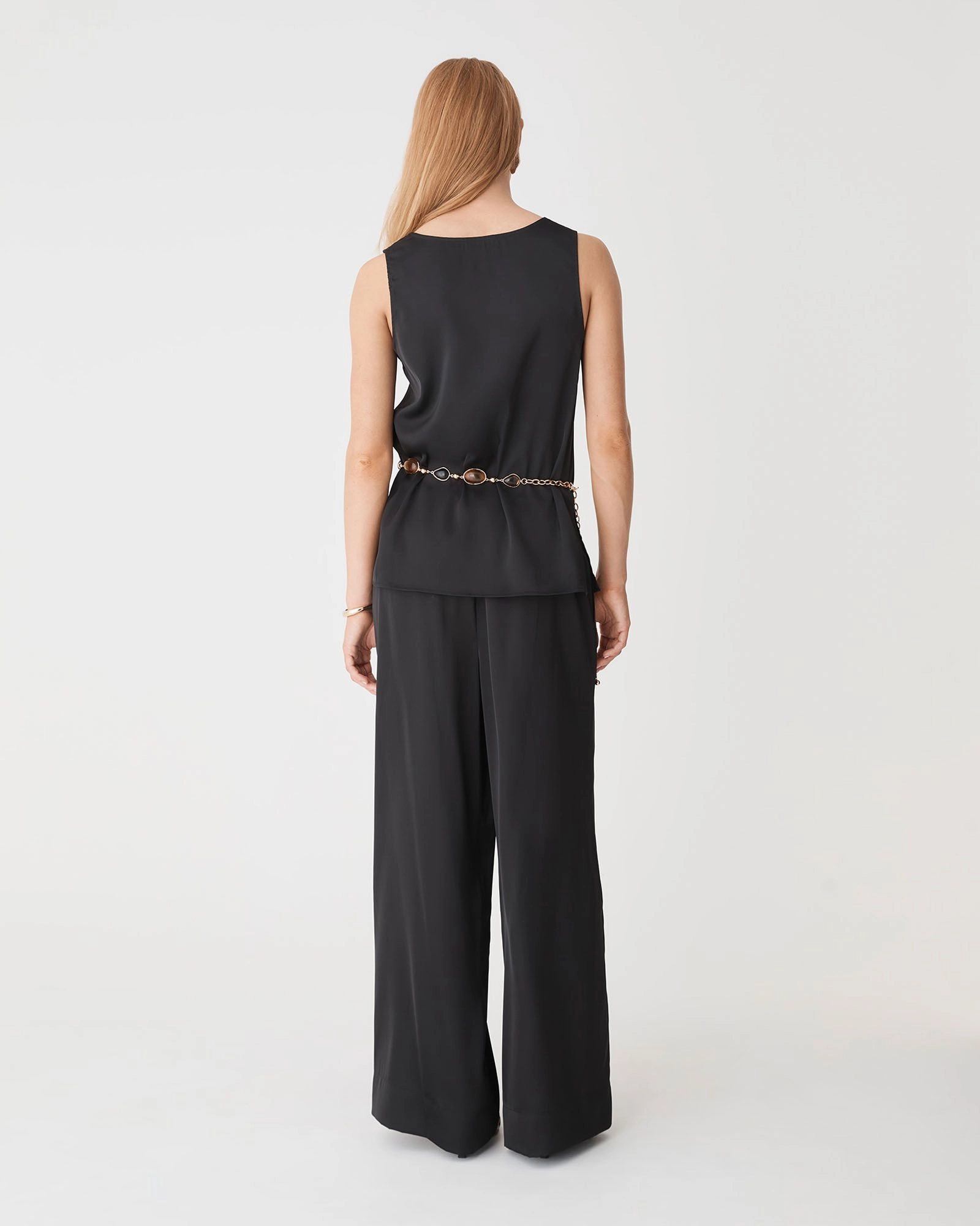 The Sadin Satin Tank Top is a timeless wardrobe essential crafted from lightweight satin with subtle sheen that feels soft and smooth against the skin. Featuring a scoop neckline and a relaxed, flowy silhouette, it pairs perfectly with the Sadin Pull-On Pants for a coordinated look.