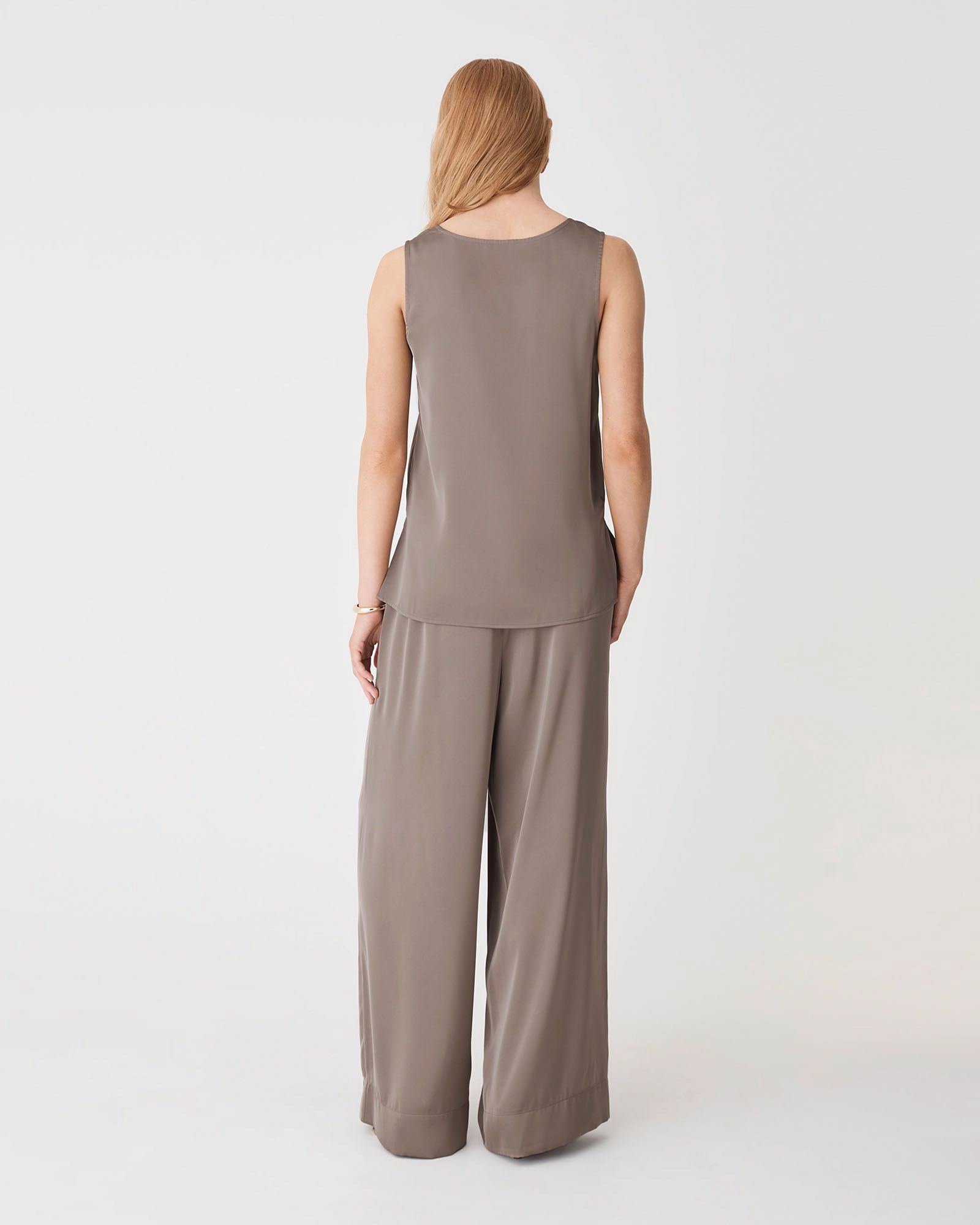 The Sadin Satin Tank Top is a timeless wardrobe essential crafted from lightweight satin with subtle sheen that feels soft and smooth against the skin. Featuring a scoop neckline and a relaxed, flowy silhouette, it pairs perfectly with the Sadin Pull-On Pants for a coordinated look.