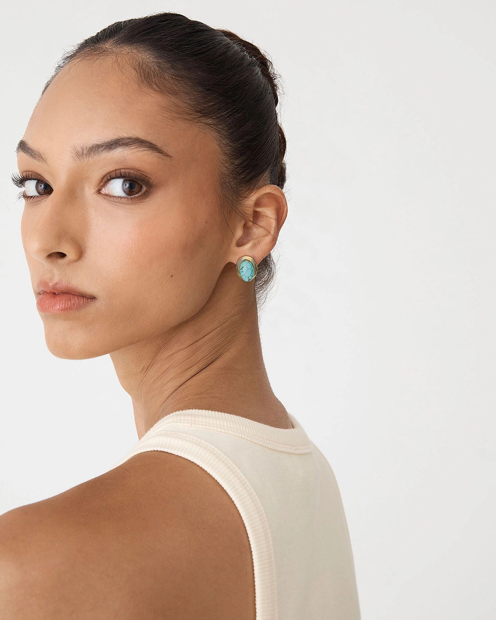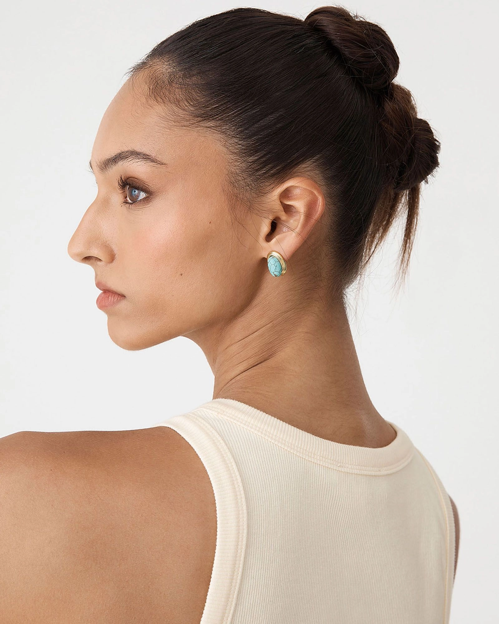 The Sienna Stone Earrings feature oval patterned stones framed in 16k gold plating. Finished with a push-back fastening design, they’re an easy choice for adding colour to your look.
