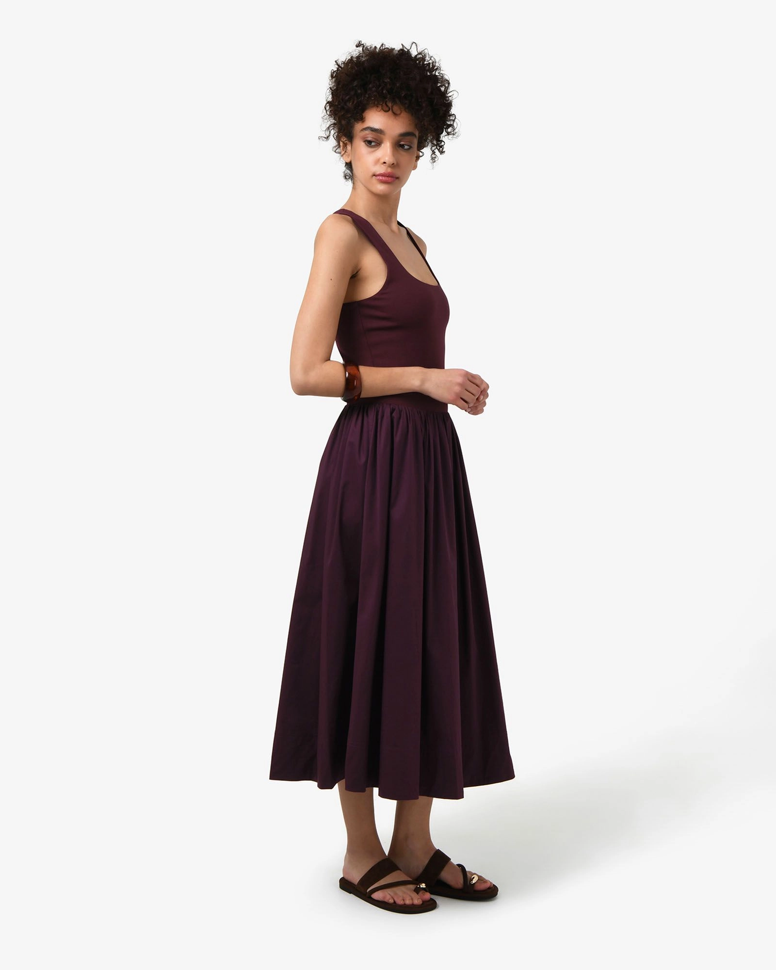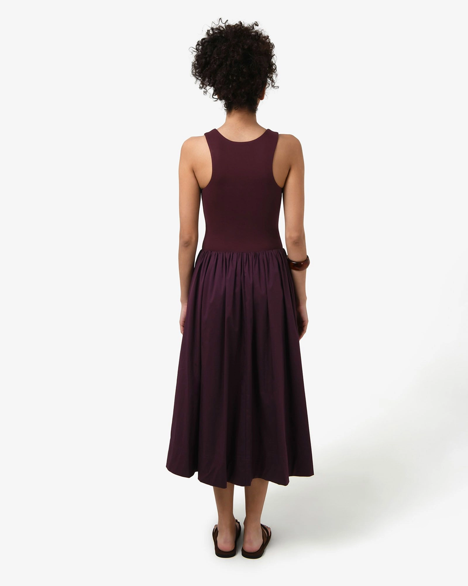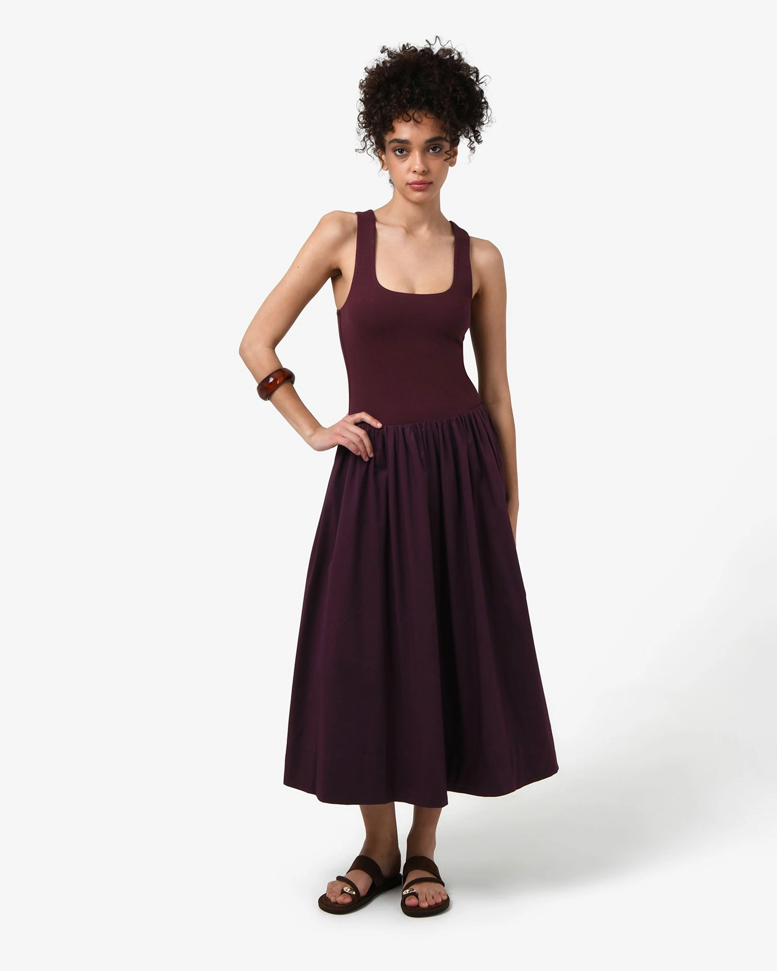 The Soho Cotton & Knit Midi Dress features a soft, form-fitting knit bodice, with a scoop neckline and a midi, cotton skirt. Gathered at the waist and partially lined, this dress offers a flattering and comfortable fit, ideal for both casual and dressed-up occasions.