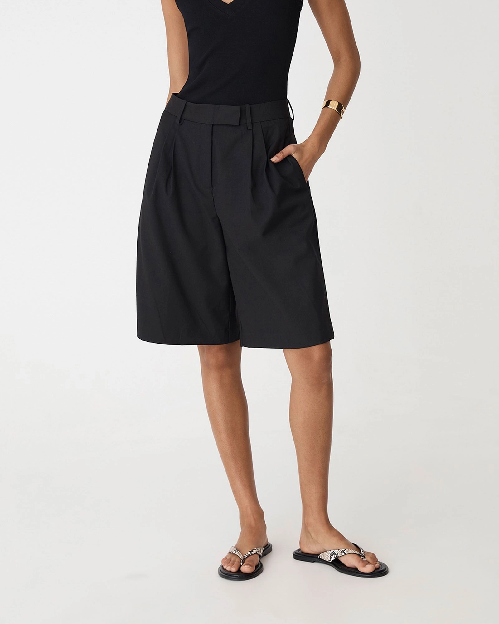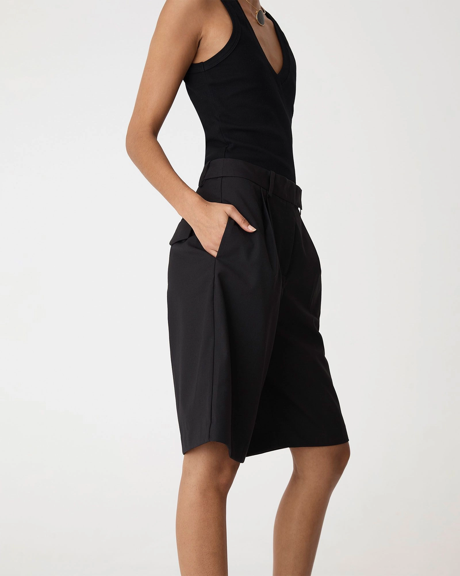The Sonique Tailored Short offers a sleek, flattering fit with extended tabs and double pleats for a refined, structured look. The mid-rise waist and relaxed leg opening ensure comfort all day, while side pockets and a secure front closure add functionality. Complete the outfit with a blazer for a sharp, office-ready vibe, or keep it relaxed with a tee for a laid-back weekend feel.