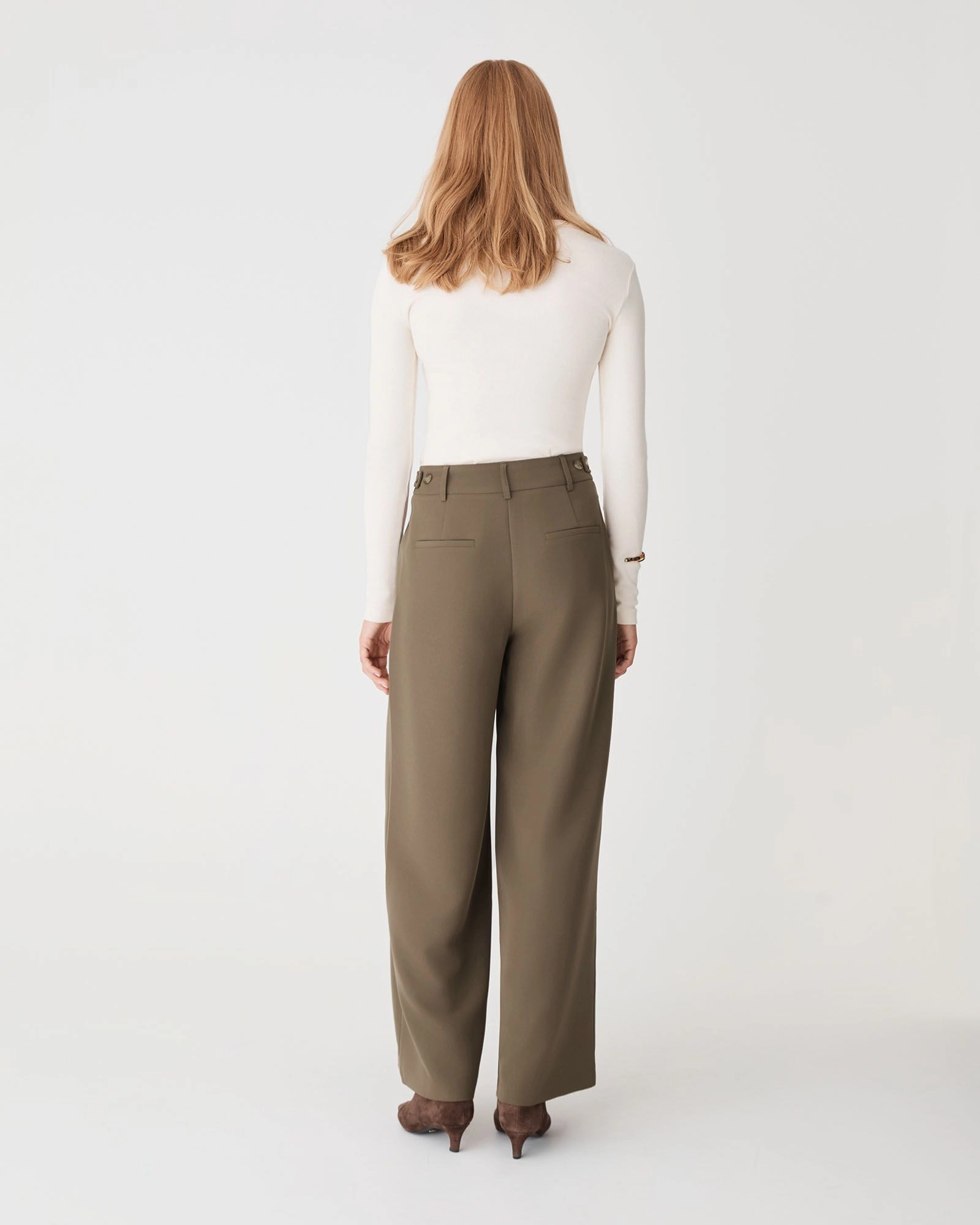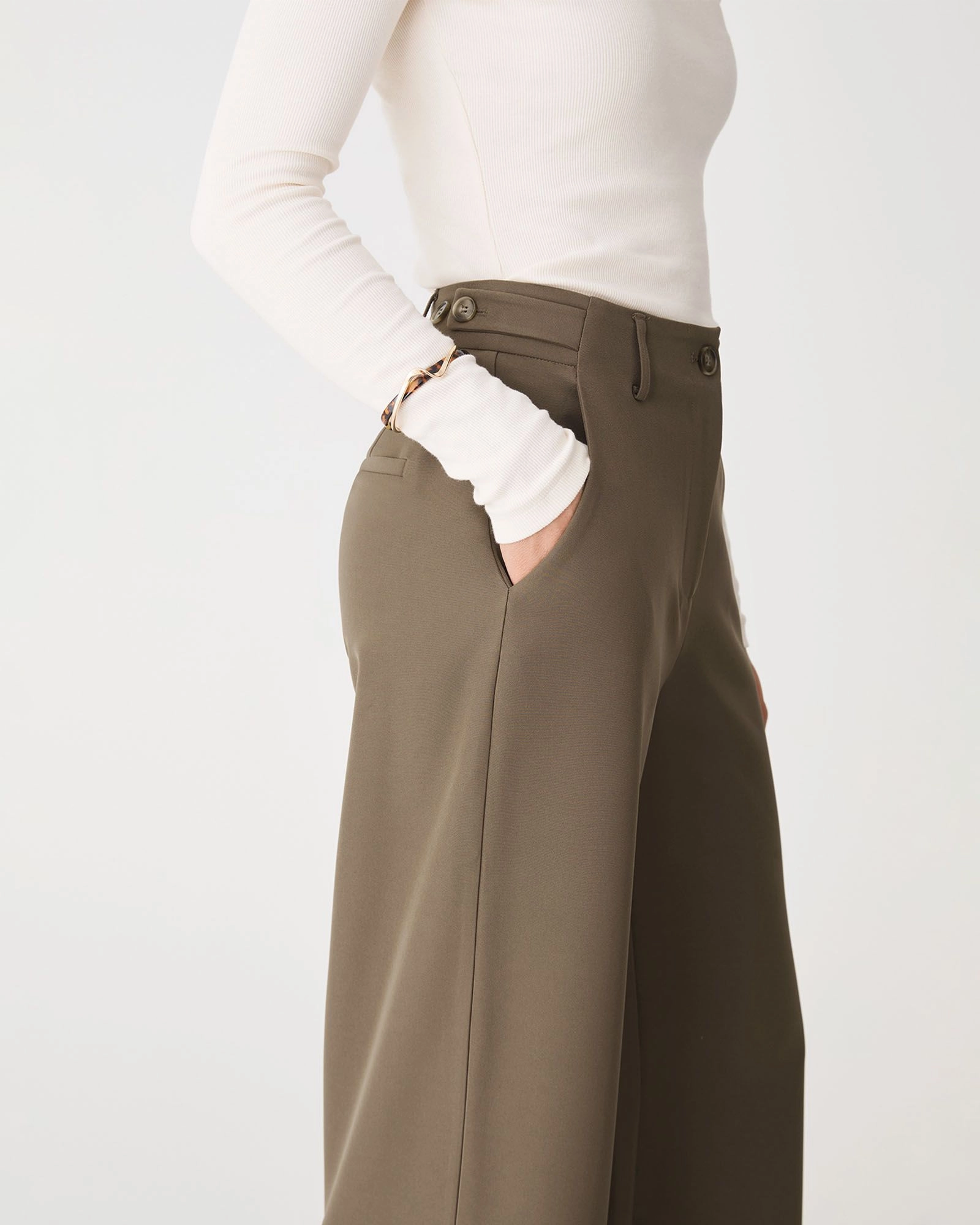 The Stevie Adjustable Waist Pants is a straight, wide-leg silhouette pant that offers a clean, structured look. Side adjuster tabs with button detailing allow you to tailor the fit at the waist, while the slight stretch fabrication offers comfort and movement. Style with fitted tops or blouses for an office to after hours look.