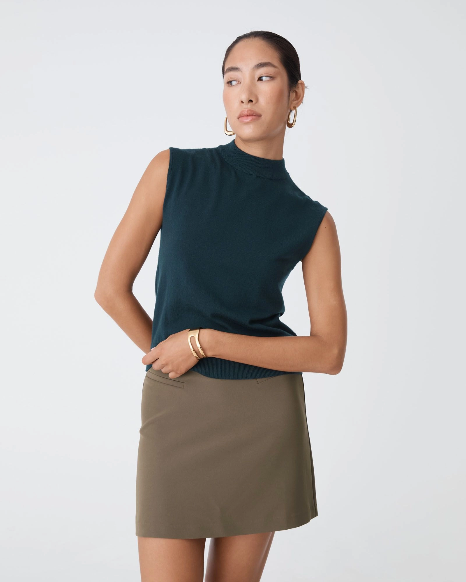 The Stevie Mini Skirt redefines the classic mini with clean tailoring and a subtle front dip at the waistband - creating a flattering, contoured shape. Designed in an A-line silhouette for an easy, comfortable fit, it also easily pairs with your favourite essentials and blouses.