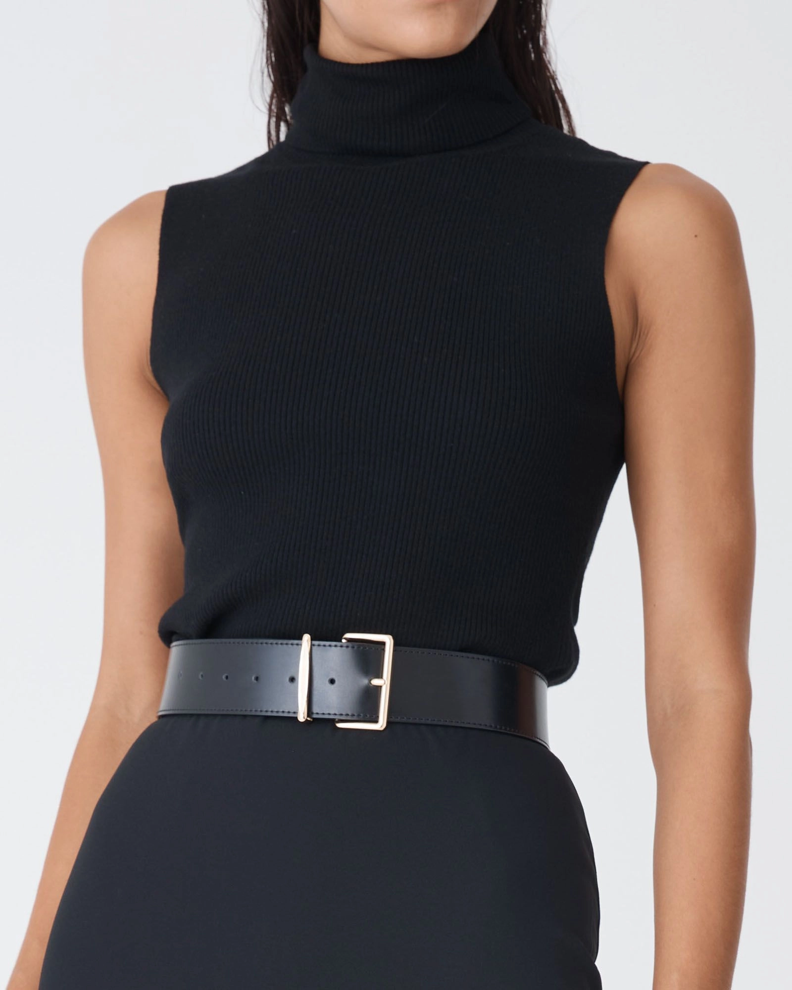 The Suzie Turtleneck Rib Knit Top is a sleek, versatile essential made from a ribbed knit fabrication. Featuring a sleeveless cut and a classic high, turtleneck neckline for a streamlined fit, it is comfortable and easy to style, perfect for layering or wearing on its own.