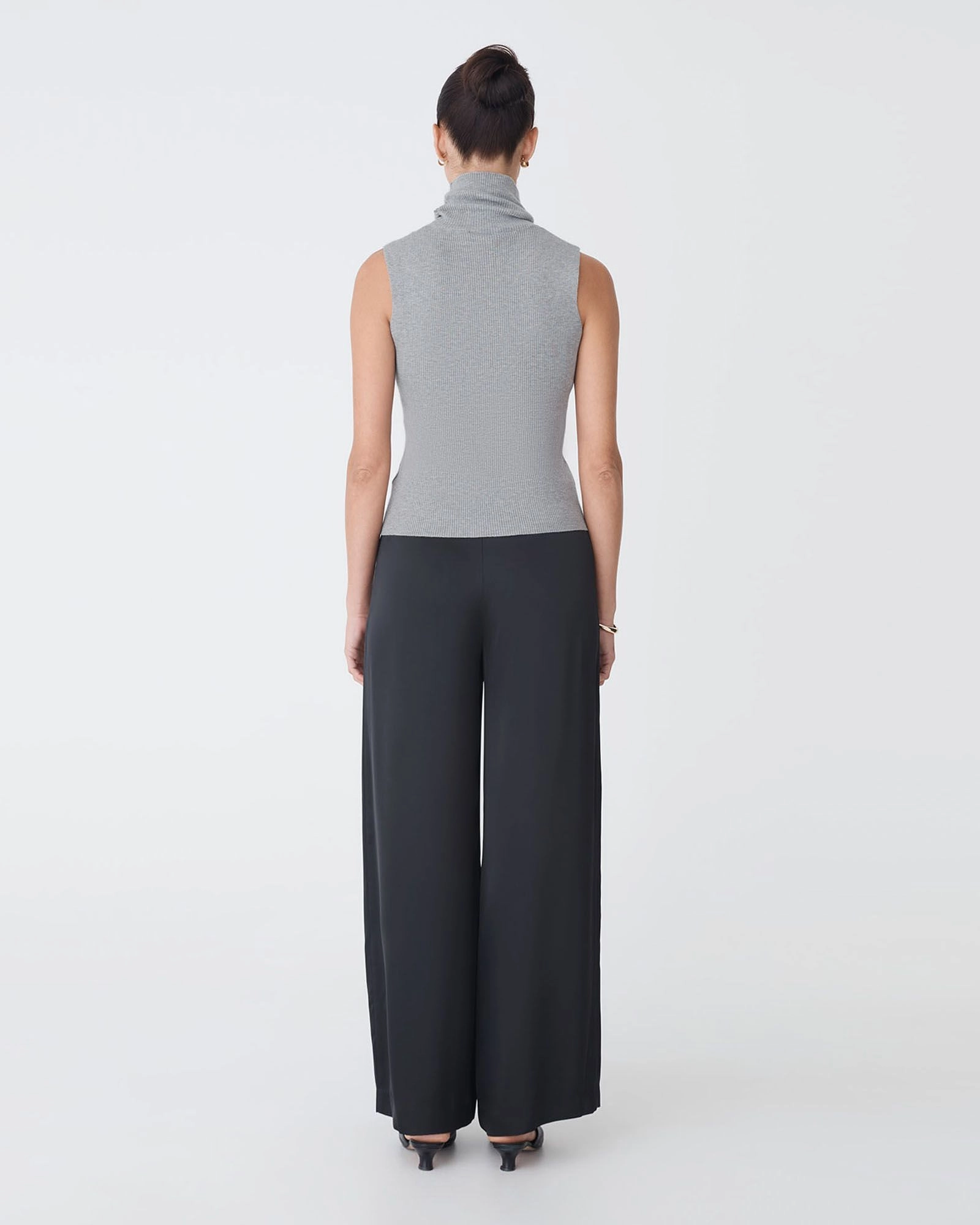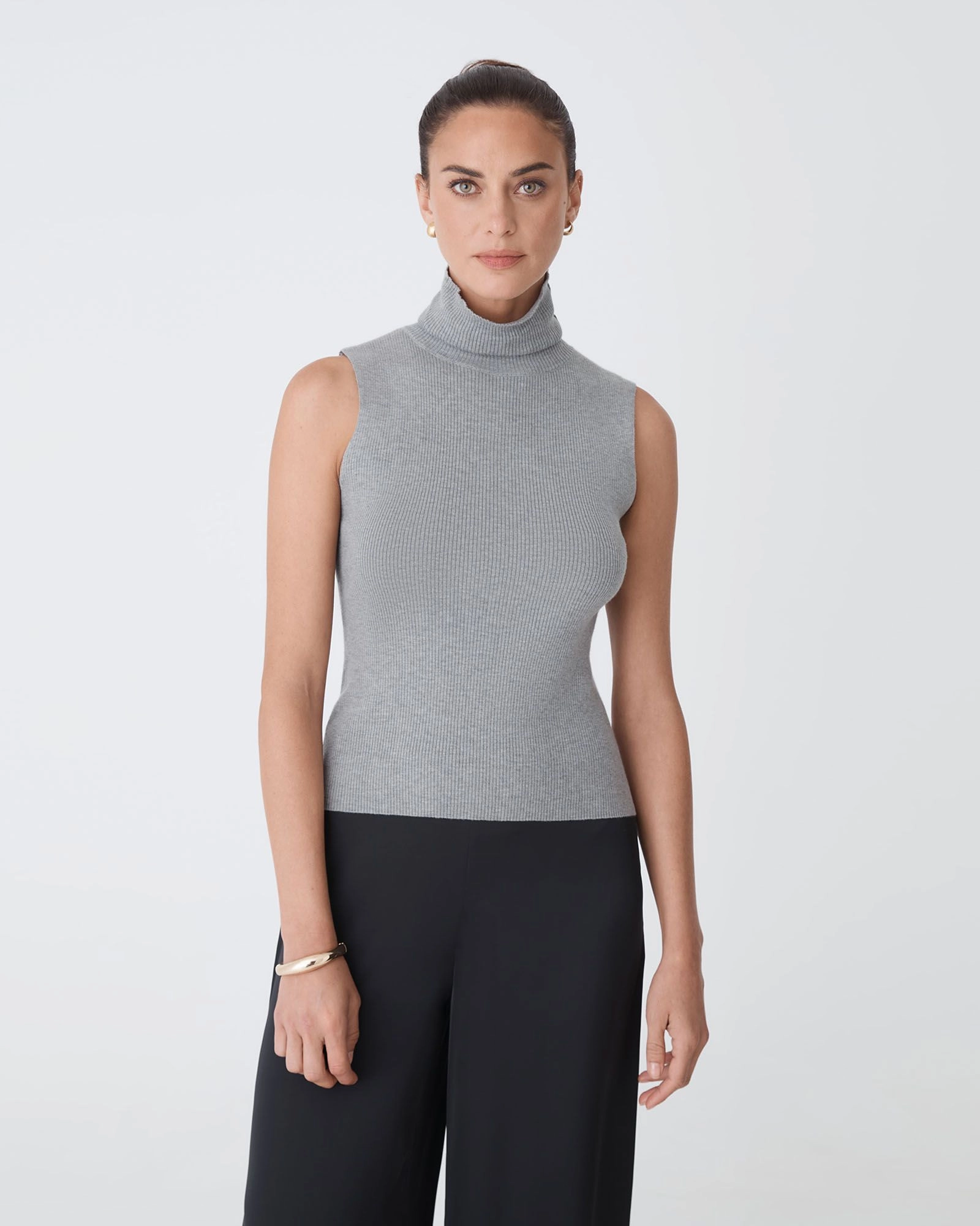 The Suzie Turtleneck Rib Knit Top is a sleek, versatile essential made from a ribbed knit fabrication. Featuring a sleeveless cut and a classic high, turtleneck neckline for a streamlined fit, it is comfortable and easy to style, perfect for layering or wearing on its own.