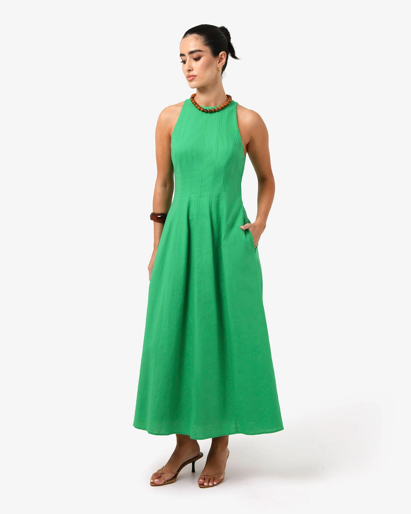 The Tory Linen Blend Panel Dress combines effortless elegance with tailored structure. It features a round neckline, fitted panel bodice, A-line skirt with vertical seaming details and functional side pockets. Perfect for the office and after hours, it’s a versatile piece you will love wearing for all seasons.