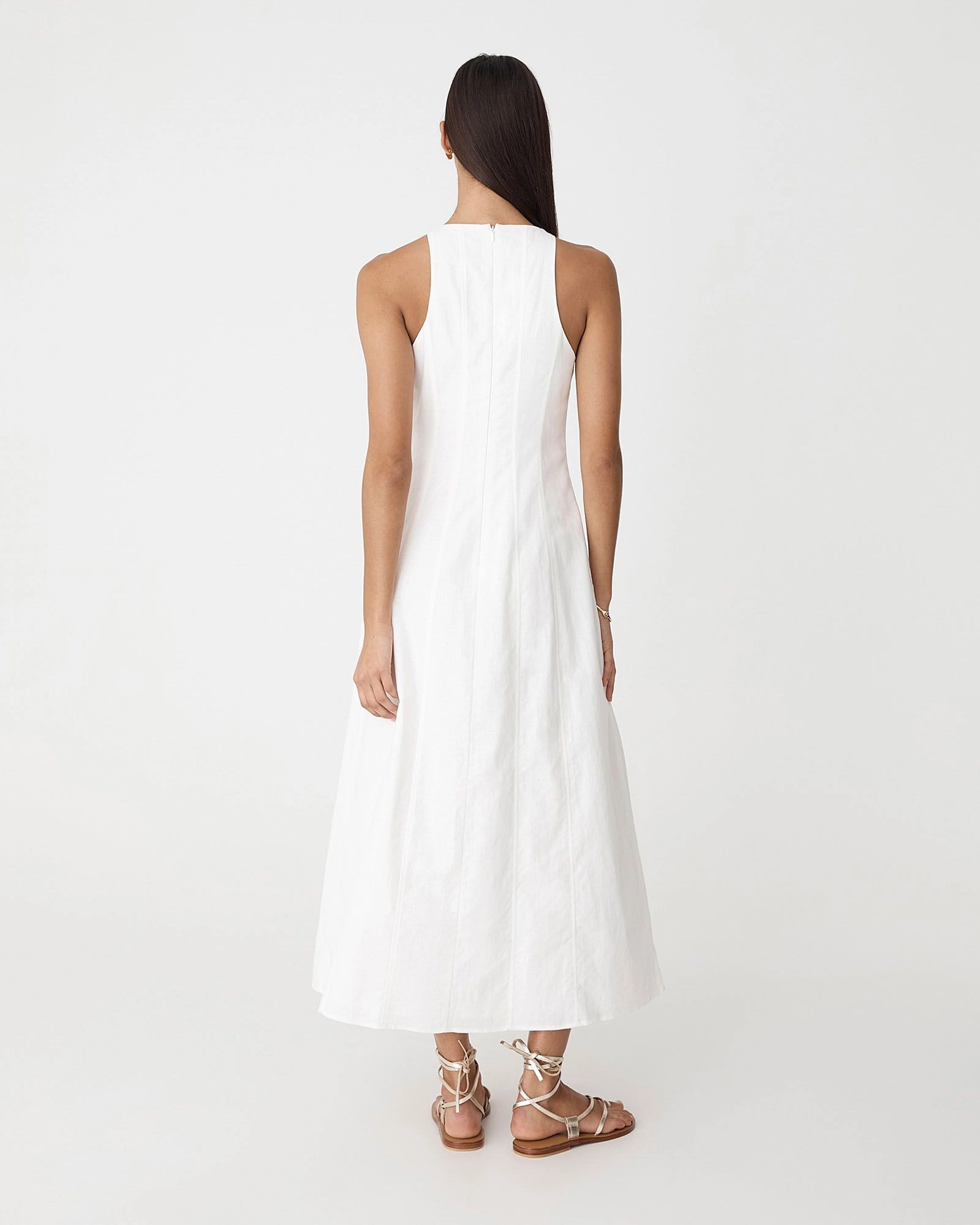 The Tory Linen Blend Panel Dress combines effortless elegance with tailored structure. It features a round neckline, fitted panel bodice, A-line skirt with vertical seaming details and functional side pockets. Perfect for the office and after hours, it’s a versatile piece you will love wearing for all seasons.