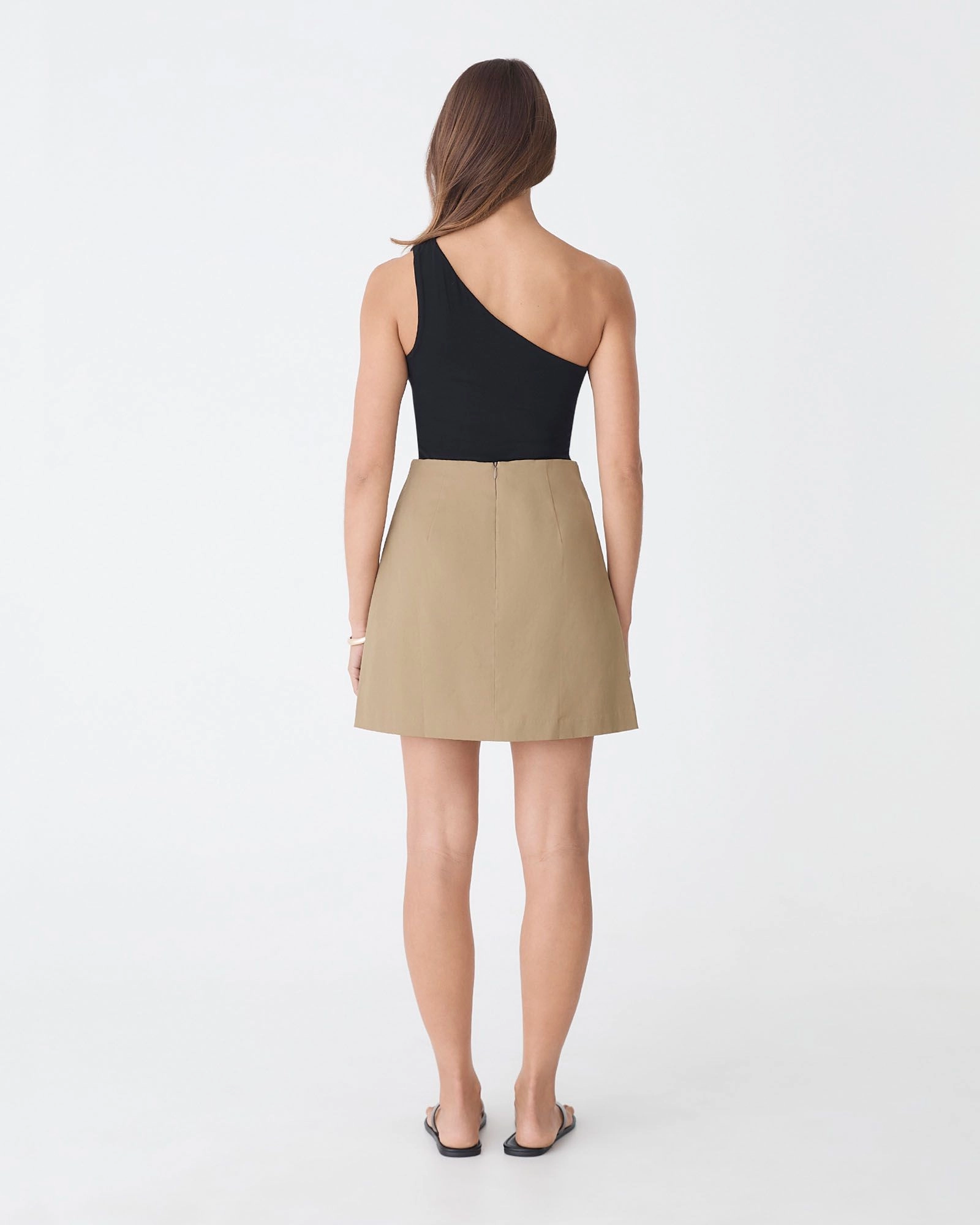 Stay polished with the Winnie A-Line Button Skirt. Made from a structured, cotton-blend fabric, it features decorative front buttons and an invisible back zipper in a flattering high-waist A-line silhouette. Style the mini skirt with a blouse and heels or pair with a tee and sneakers for off-duty days.