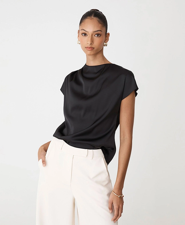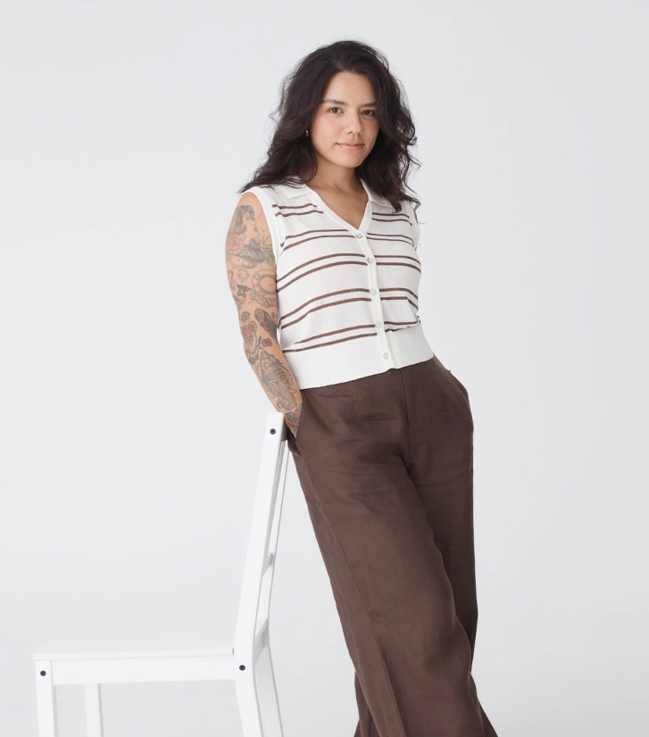 "Depending on the style of the top, there's plenty of room to play! With a more casual top, layering a blazer over it can immediately change the vibe of the entire outfit and make it more formal. My personal tip would be to pair tops with tailored pants since it always brings an elevated style. For a more femme vibe, a midi or maxi skirt makes a beautiful pairing."
