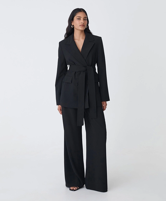 "I love a good set! It’s what I wear when I don’t know what to wear and want to look put together. With that said I like styling it so that it’s not too corporate - for a tailored blazer with matching bottoms, I soften the look with a simple tank or knit like the Valentine. I’ll then pair it with ballet flats or kitten heels.When styled apart, I’ll wear the blazer with denim, a slip skirt or over a dress to elevate an everyday look. Or pair the trousers with a relaxed knit, or crisp shirt for an easy-to-weekend feel. Of course adding jewellery and belts elevates any of these looks!"