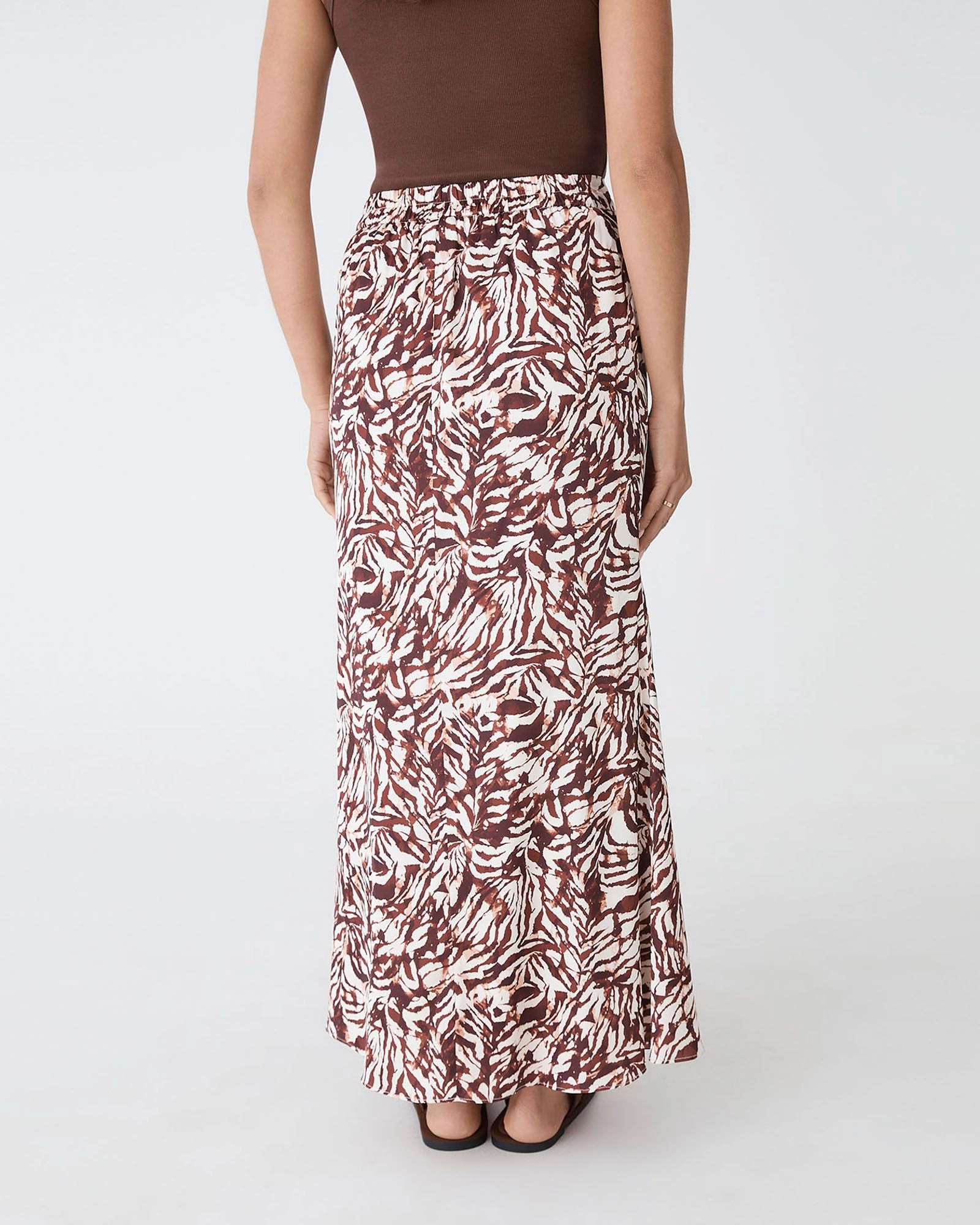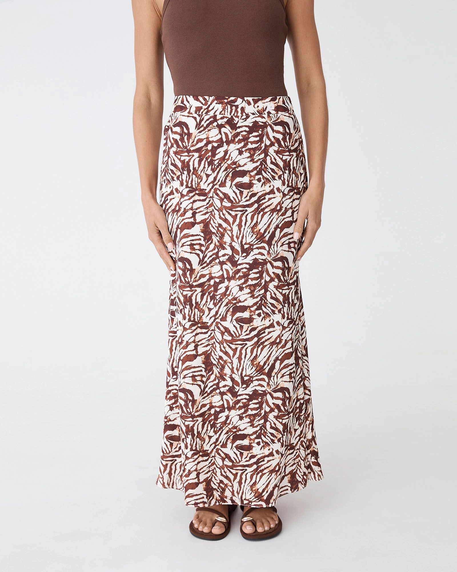 The Zuhara Column Skirt delivers a sleek, elongated silhouette in a bold zebra print. Designed in a flattering maxi length, it features an elastic back waistband, invisible side zipper and full lining. Finished with a fluted hem in a maxi length, it’s an easy statement piece for day or night. Pair with casual tops or style with the matching Zuhara Scarf Tie Top to complete the look.